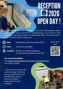 Our Reception 2026 Open Day is on Wednesday 26th November 2025 at 9.30am and 5pm.